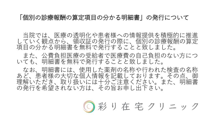 「個別の診療報酬の算定項目の分かる明細書」 の発行について